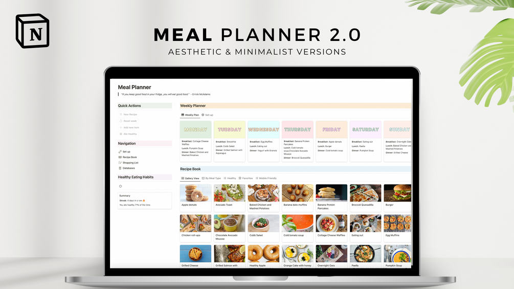 Simplify your meal planning and never miss a grocery item with our new Notion Meal Planner.